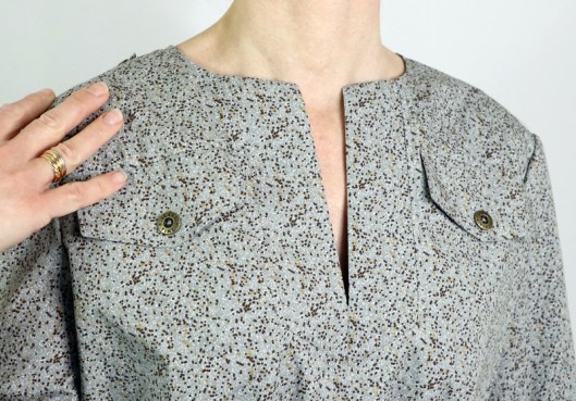 J’avoue toutefois que je regrette un peu mon choix de tissu car, à cause de cet imprimé, on ne voit pas tous les jolis détails de ce patron…