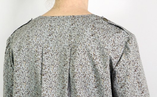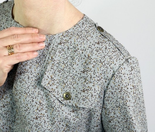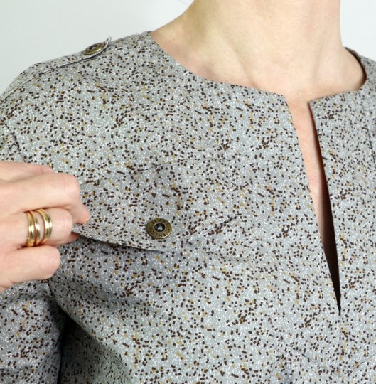 J’ai aussi ajouté des pattes épaules (non prévues dans le patron). Je trouve que ça apporte un petit quelque chose en plus… Les boutons en métal viennent de chez Fil 2000, je les aime beaucoup !