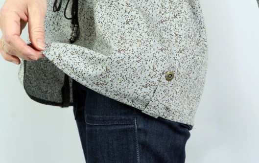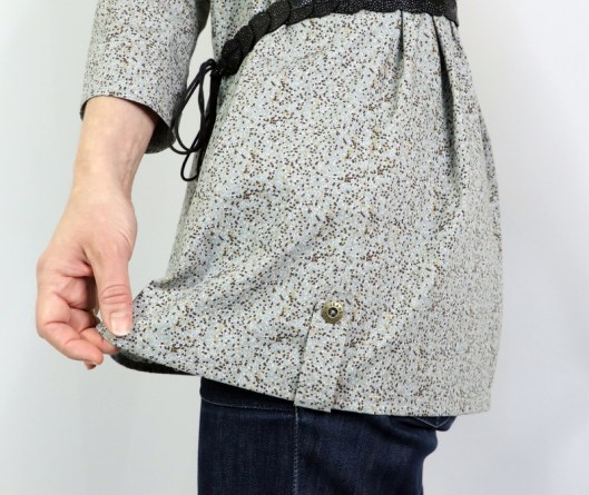 J’ai décidé d’ajouter des pattes boutonnées (non prévues dans le patron) au bas de la tunique, en rappel des poignets :