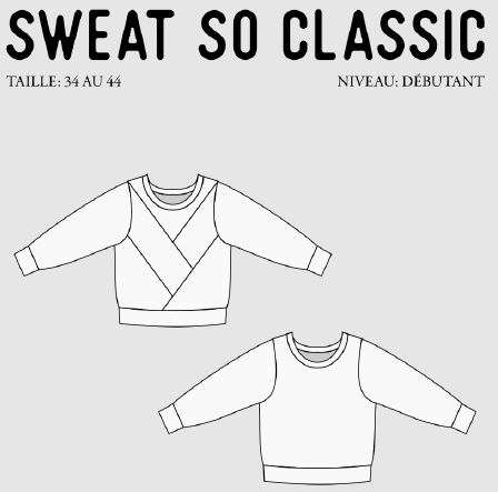 C’est d’ailleurs entre autres la description que donne la créatrice à ce sweat qu’elle a nommé « so classic » : « L’incontournable sweat shirt comme on l’aime, en molleton et à la coupe confortable. Une pièce ludique dans sa version à empiècements géométriques ou bien version classique à twister dans une jolie maille fantaisie. » Voici le schéma technique :