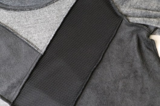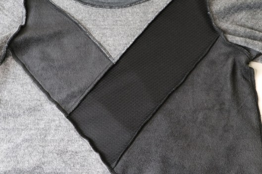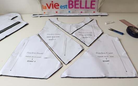 Côté tissu, il faut évidemment utiliser un tissu extensible de type molleton, sweat… Je vous invite à lire l’article sur les tissus conseillés. Vous l’aurez compris, ce sweat est parfait pour utiliser votre chutes et c’est donc ce que j’ai fait ! Si vous cousez la version simple sans empiècements, sachez qu’il vous faudra 1m40 de tissu.
