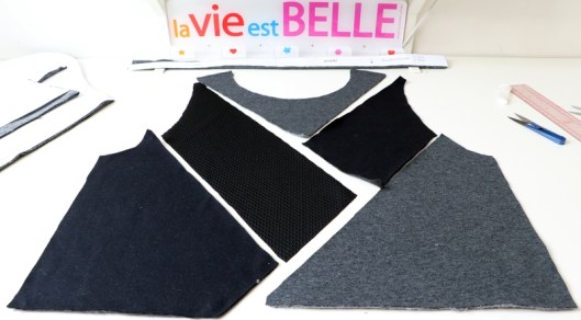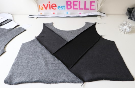 Les instructions de montage sont claires et suffisamment illustrées. Les empiècements du devant sont hyper simples à assembler, ça m’a rappelé la technique du patchwork !