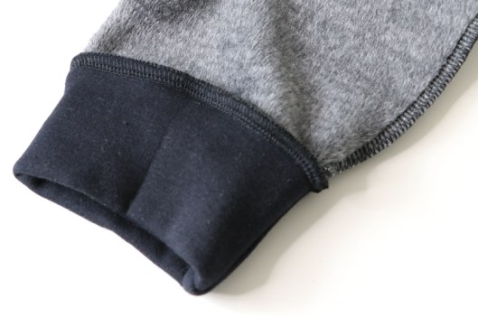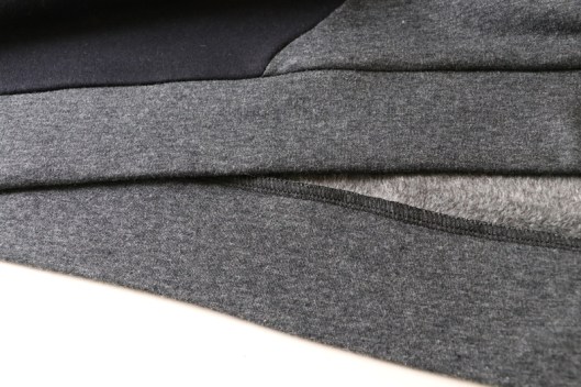 Le PDF (A4 et A0) propose un système de calque bien pratique, ce qui fait qu’on peut n’imprimer que sa taille. Et puis, ô bonheur, les valeurs de couture sont incluses et elles sont de 0,7 cm ! Parfait pour l’assemblage à la surjeteuse (je précise que le livret présente l’assemblage de ce sweat à la machine à coudre). Ci-dessous, voici le sweat vu sur l’envers :