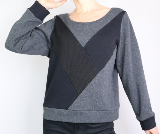 Ce « patchwork » permet beaucoup de possibilités à ce sweat,Merci pour avoir mentionné la petite astuce de la bande d’encolure, bonne journée !