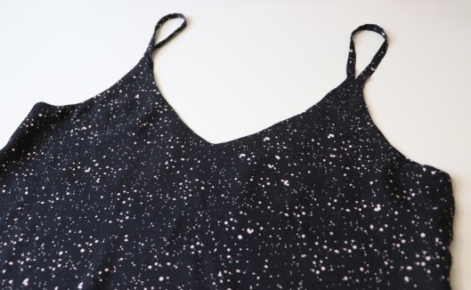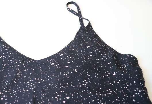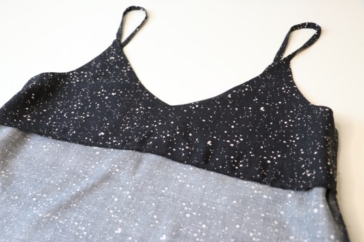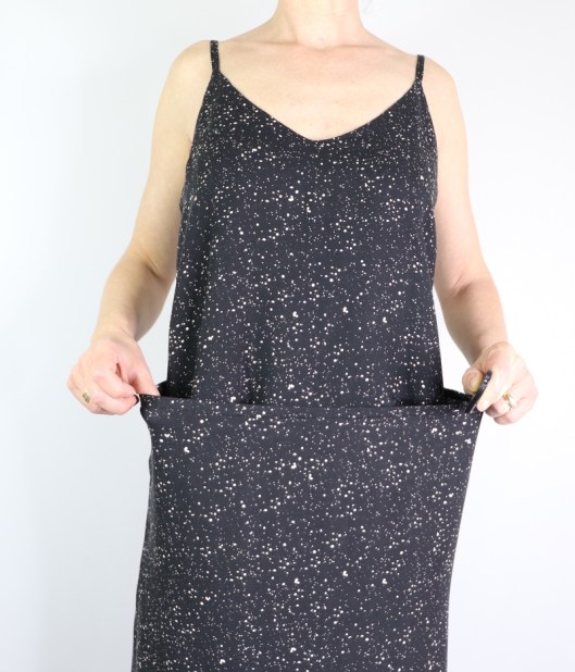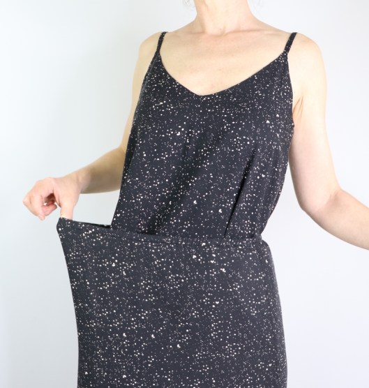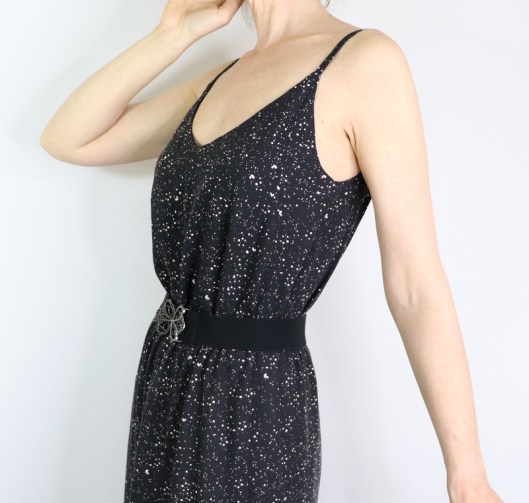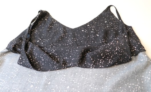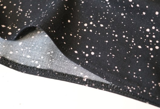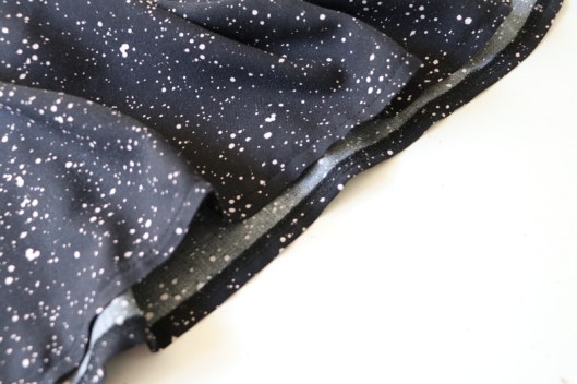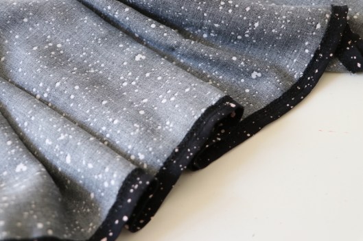 Côté ourlet, j’ai fait un simple ourlet surjeté de 1 cm (au lieu de 3 cm)