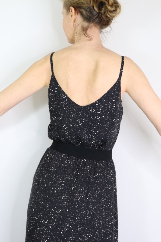 Le décolleté devant et dos est des plus charmants et féminins avec cet encolure en V :