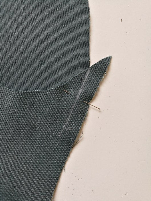 Vous avez coupé vos pièces avec des marges de couture (ici 1 cm), ce qui forme des angles pointus pour le dessous de manche :