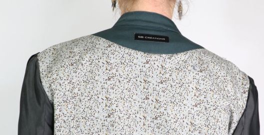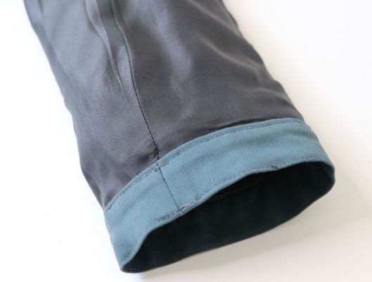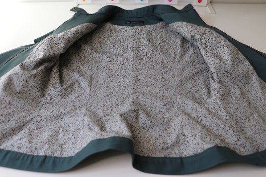 La veste est intégralement doublée (ici le restant de ma popeline de coton de ma tunique Burda, acheté chez Driessen Stoffen et pour les manches une doublure classique acétate) :