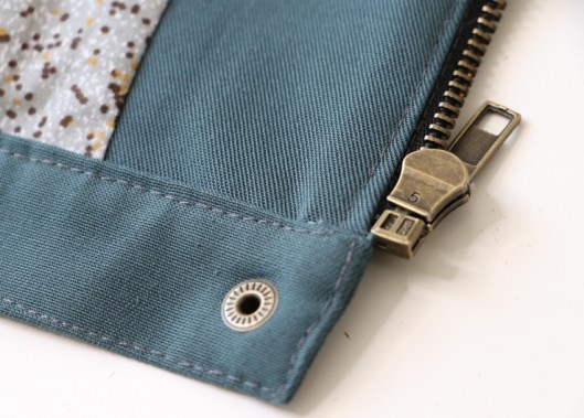 Quel beau travail ! Bravo ! Je trouve que tu as bien fait de mettre des pressions, ça va bien avec le style et c’est parfaitement assorti au zip.