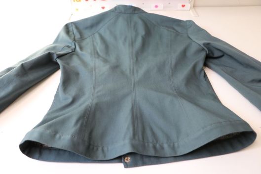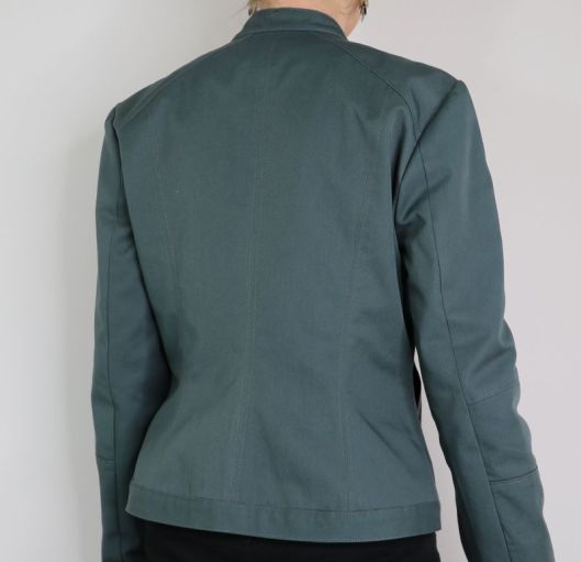Il s’agit donc d’une veste courte aux multiples découpes. Je les ai quasi toutes surpiquées (fil polyester standard).