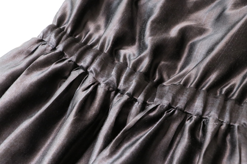 Pour mon récent anniversaire, j’ai été drôlement gâtée ! On m’a notamment offert un coupon de 3 mètres de ce superbe satin de soie qui vient des Coupons de Saint-Pierre qui est d’une beauté, je ne vous dis que ça ! Il me fallait donc choisir THE bon modèle, THE valeur sûre, histoire de ne pas me planter ! Burda préconise un tissu léger et fluide de type viscose. Exit les popelines de coton et autres étoffes trop raides/rigides du fait des fronces à la taille… Cette soie était donc parfaite pour ce modèle !