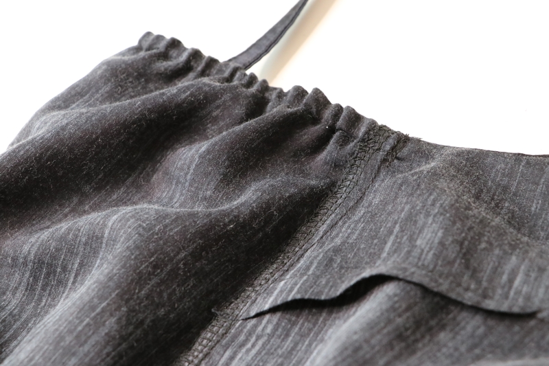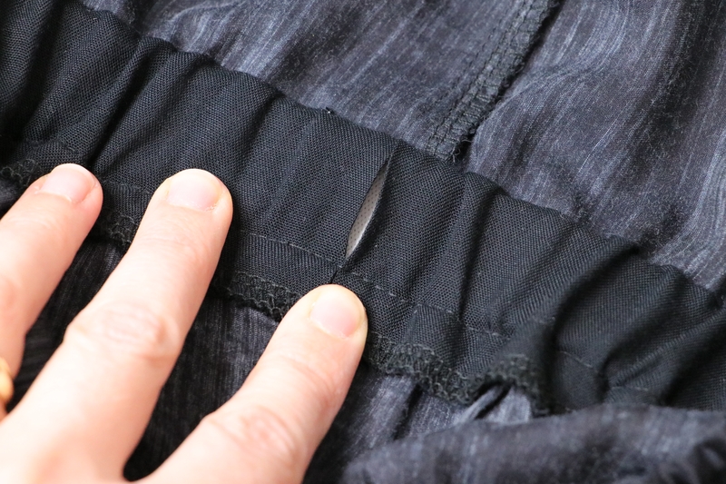 Le dos est légèrement élastiqué : dans une coulisse, on vient insérer un élastique de 0,5 cm. La méthode proposée par Burda est simple et astucieuse (pour en savoir plus, je vous invite à relire mon précédent article).