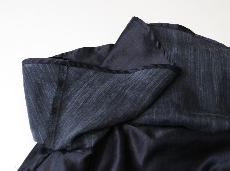 Autre détail qui a son importance : je n’ai pas osé laver ce tissu de peur qu’il ne perde toute sa splendeur… Sacrilège me direz-vous ! Je sais, je sais… Mais je vous rassure, j’ai quand-même bien décati le tissu avant de le couper ! Il est certain que ce n’est pas la même chose que de laver le tissu mais bon voilà… Je n’y connais rien en terme de soie alors si vous avez des conseils, je suis preneuse !