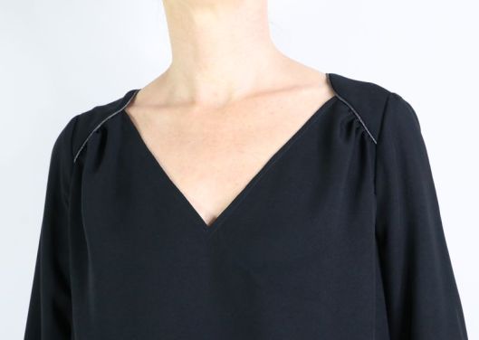 Trois profondeurs de décolleté sont proposées sur le patron pour une encolure en V toujours sexy, sans jamais être vulgaire.