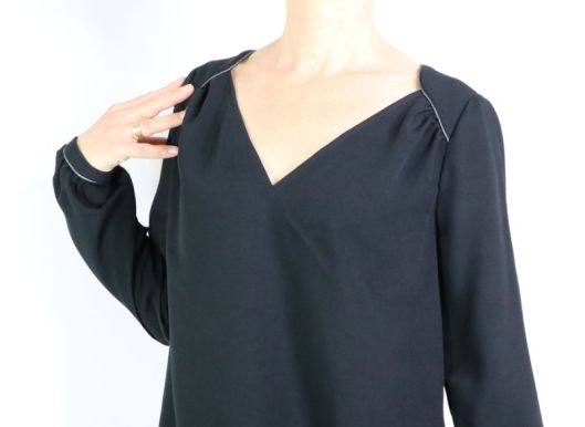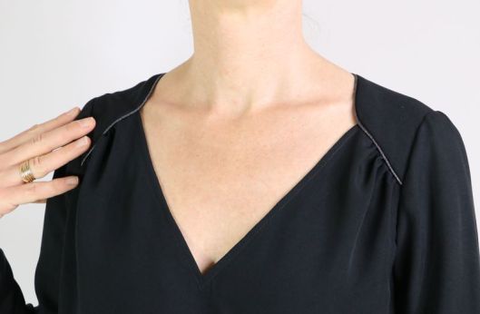 Le décolleté en V est fini par une parementure.