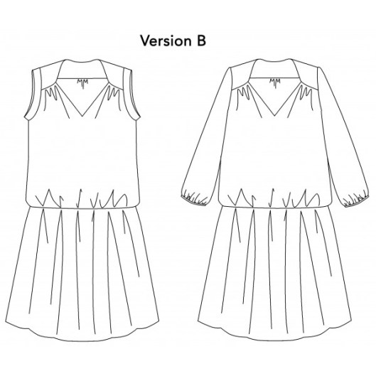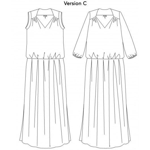 Voici la description du patron par la marque PM Pattern : « Que ce soit en version blouse (Version A) ou en version robe (Versions B & C), Suùn est un modèle très féminin, simple à réaliser sans aucune difficulté technique. A manches courtes ou à manches longues, il pourra être porté en toute saison.