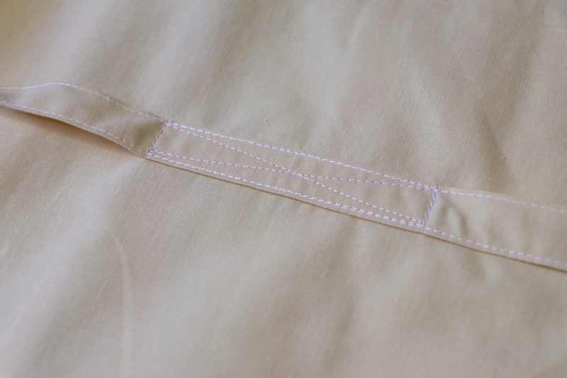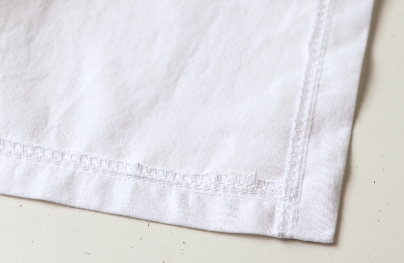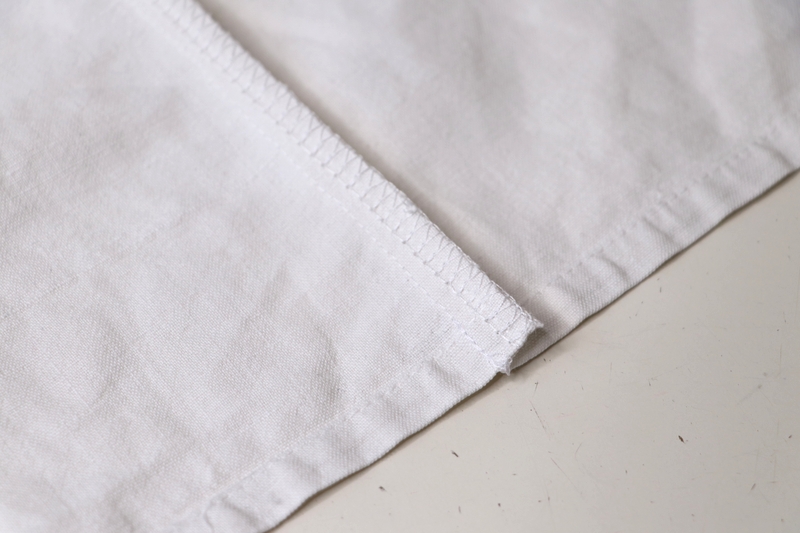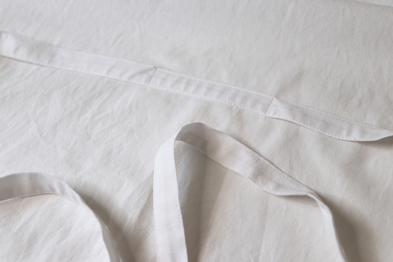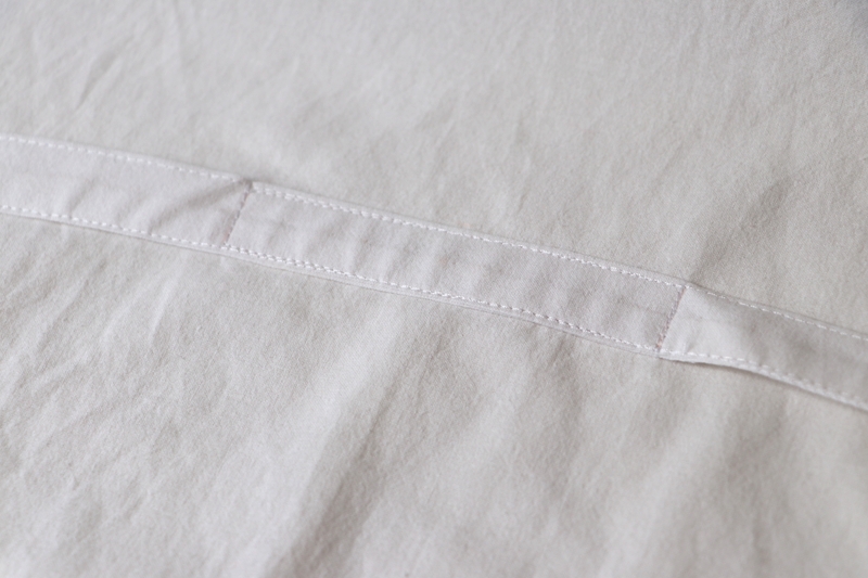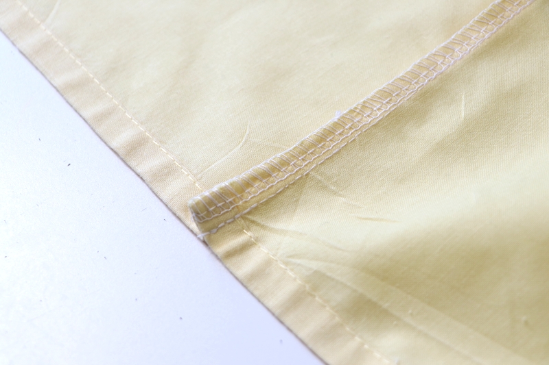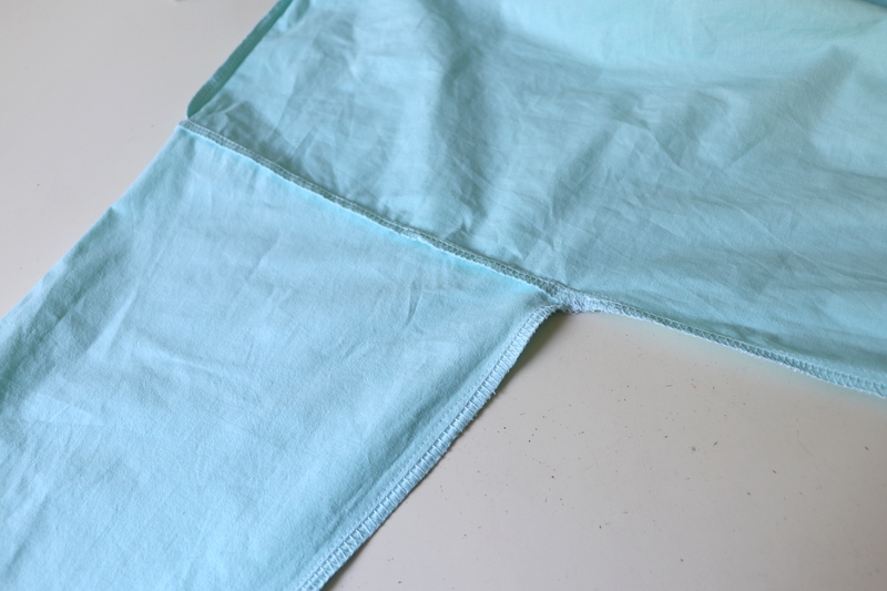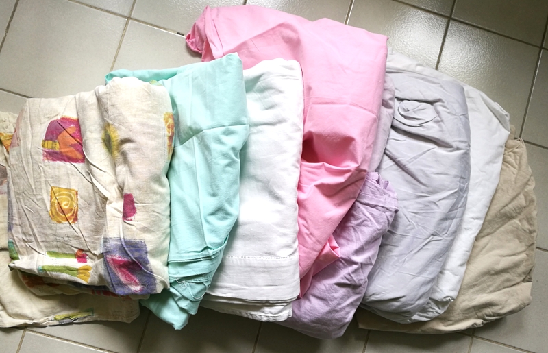 Pour les ourlets, j’ai fait un simple ourlet surjeté piqué. J’ai aussi, pour certaines, utilisé les ourlets existants des draps/couettes, ce qui fut un gain de temps fort appréciable…