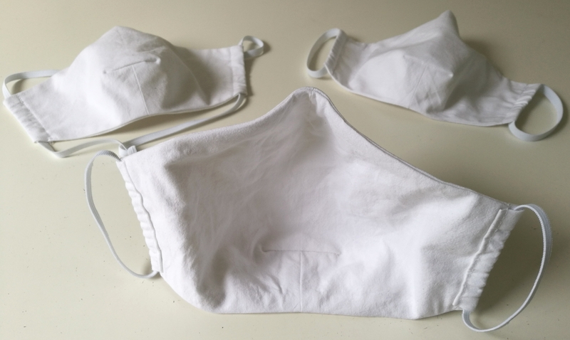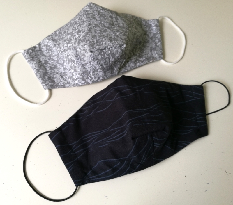 Ce patron de masque existe en trois tailles. Pour choisir la bonne taille, il convient de mesurer la dimension entre le bout du nez et le menton. J’ai ainsi cousu la taille L pour mon mari et la taille M pour moi. J’ai également cousu la taille S pour mes nièces et c’est la bonne taille je trouve pour les adolescents (tout dépend aussi de la forme du visage… à tester donc !). Ci-dessous, ce sont ceux pour mon mari :