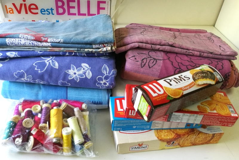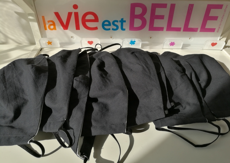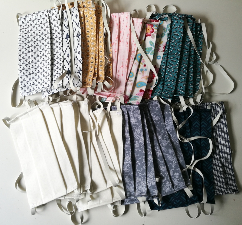 Pour ma part, j’ai donné draps, couettes, taies d’oreiller, gâteaux mais aussi tout mon stock coloré de fils. Moi qui ne couds quasi exclusivement que du foncé, je ne voyais effectivement pas l’intérêt de garder tout cela… je leur ai également donné des masques que j’ai cousus dans mes chutes de tissu.