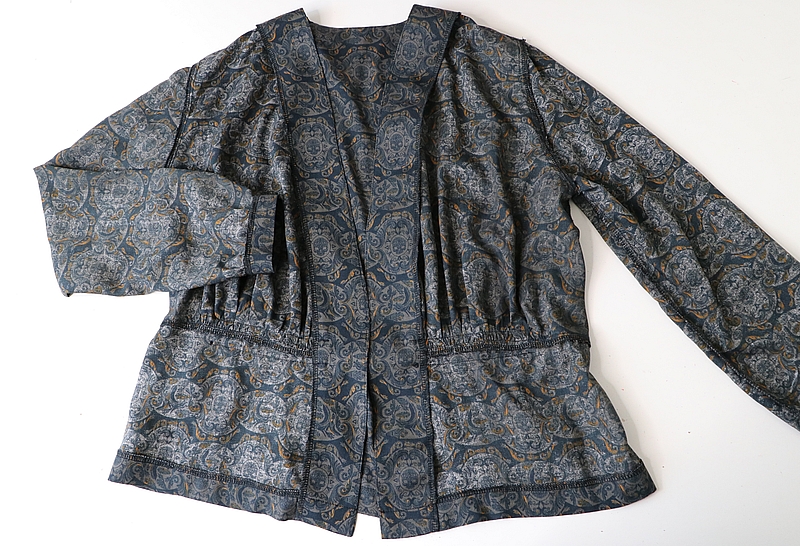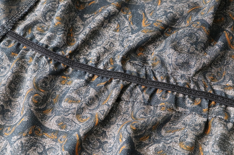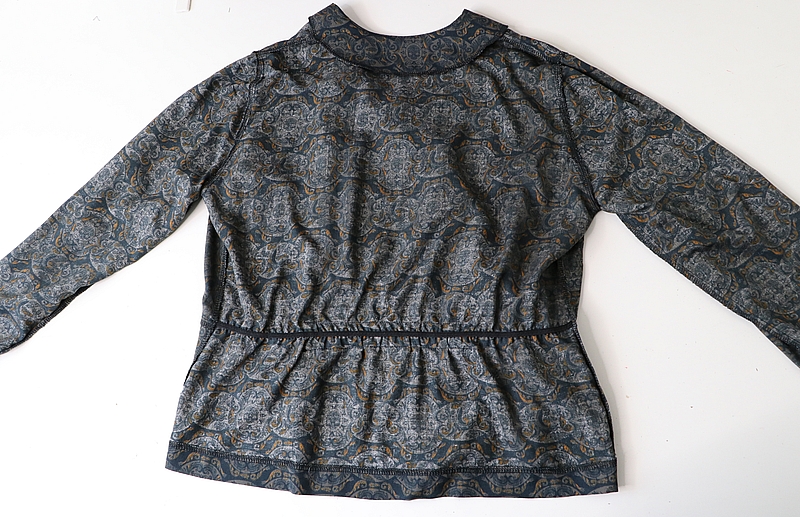 Comme indiqué précédemment, j’ai ajouté un élastique au dos au niveau de la ligne de taille pour cintrer davantage la blouse :