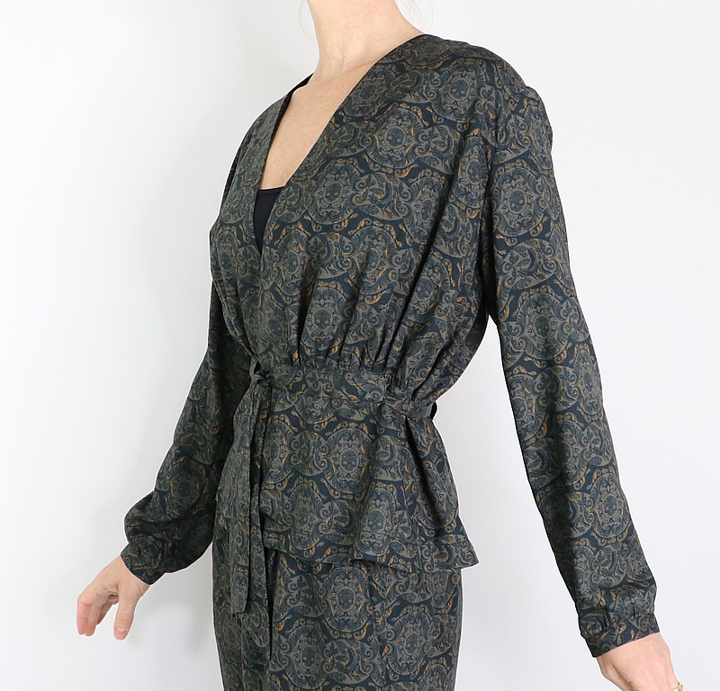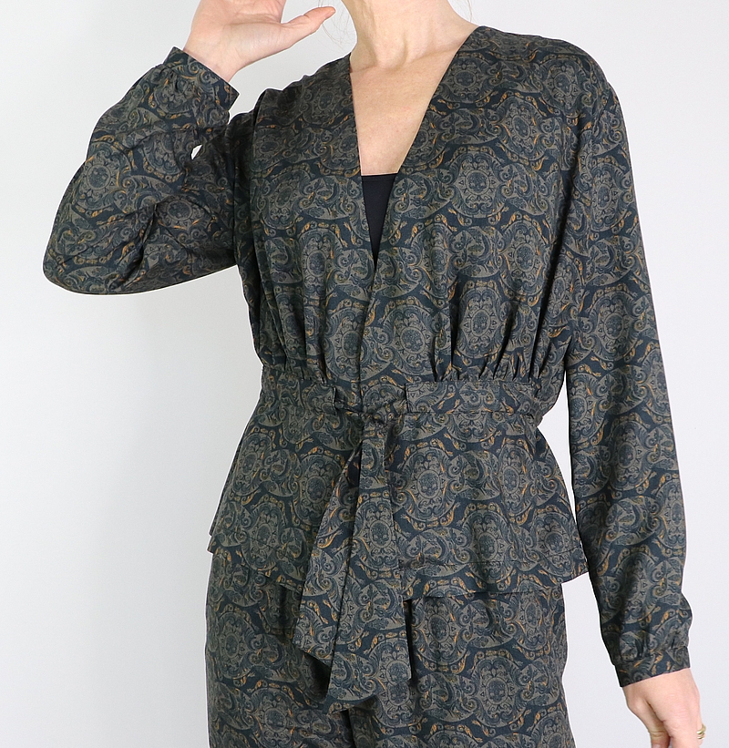 Magnifique! j’adore cette forme de top et le tissu est superbe. Je retiens l’idée de l’élastique caché par les larges passants et la ceinture. Le visuel est très joli