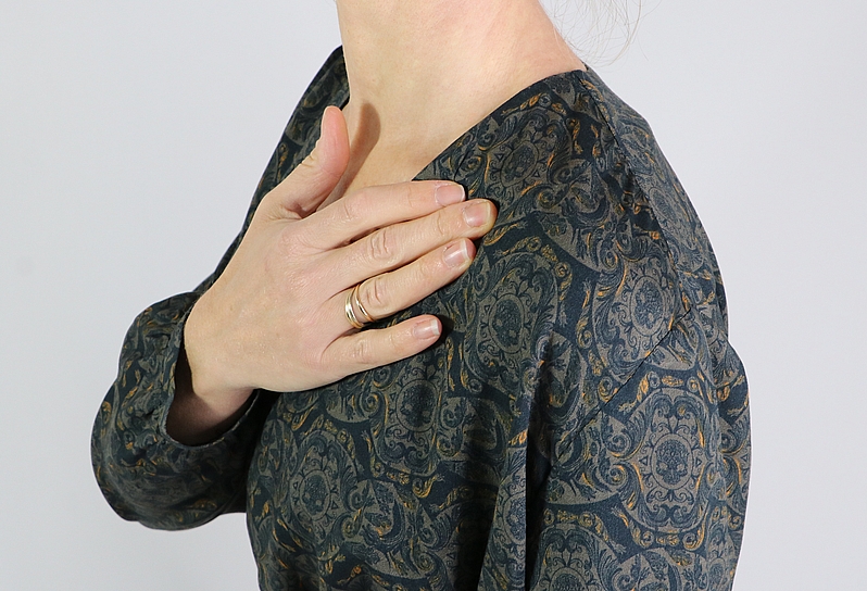 Peut-être aussi que pour la prochaine version, il faudrait que je raccourcisse la longueur de la ligne d’épaule même si, pour un vêtement d’intérieur, ça ne me gêne pas plus que ça…