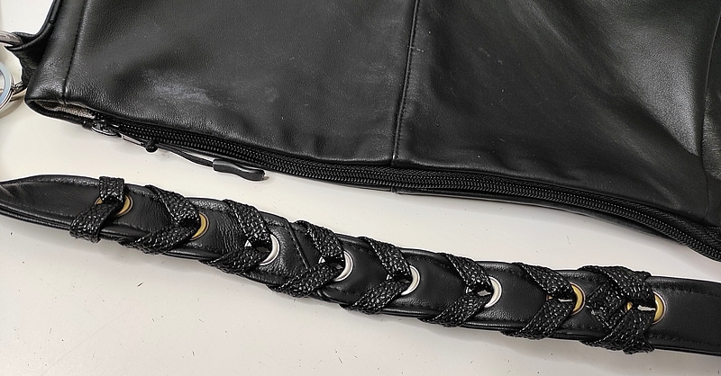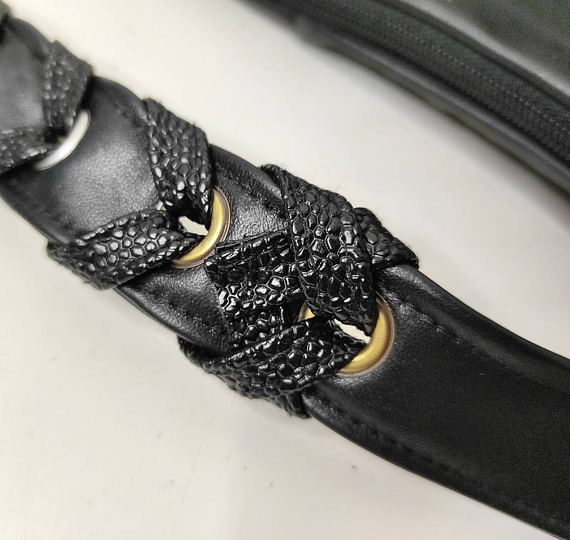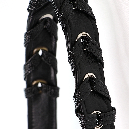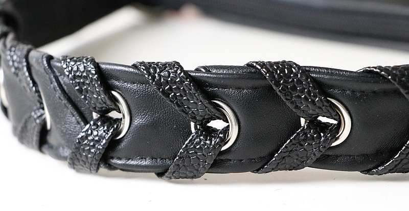 J’aime particulièrement la bandoulière avec ces œillets et ce lien entrelacé. C’est un détail absolument charmant !