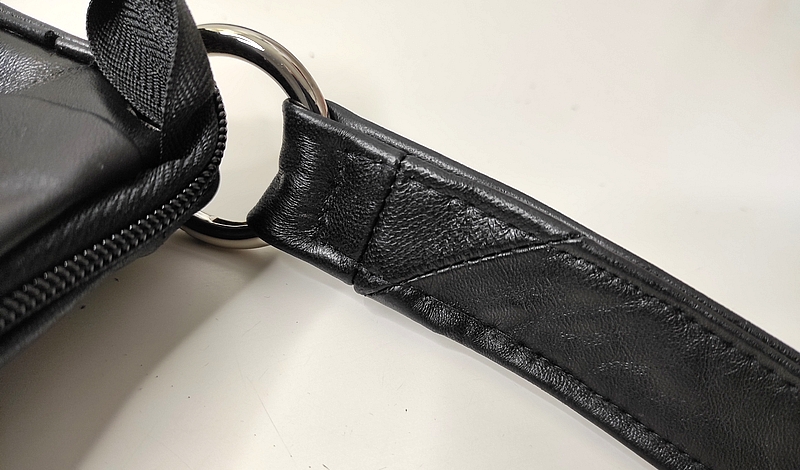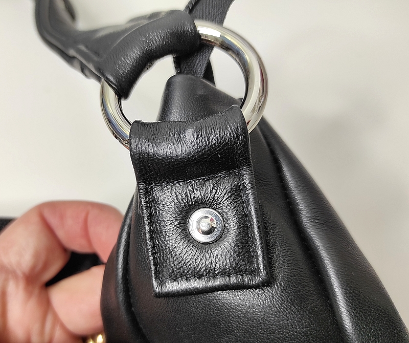 La bandoulière vient se positionner sur les pièces côtés du sac grâce à un anneau mousqueton. Nouveauté pour moi, je ne savais pas que ça existait !