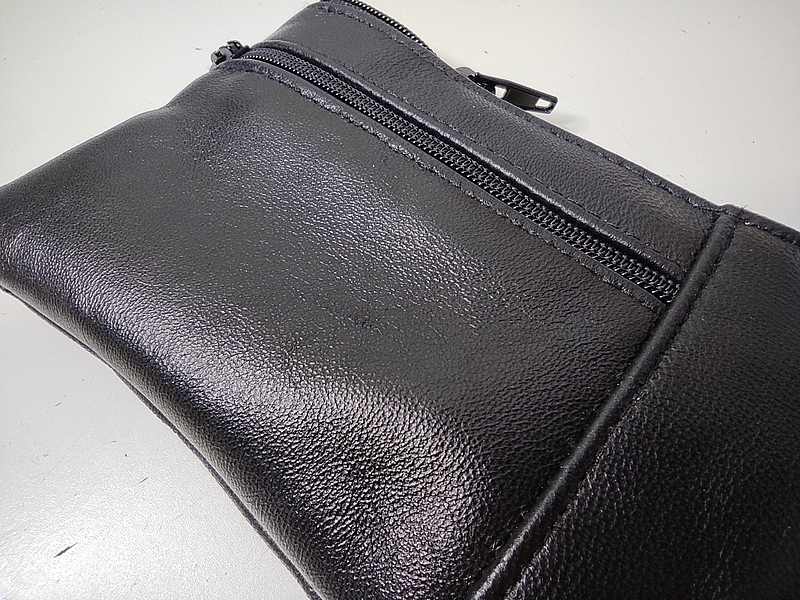 Pour compléter et finir les chutes de ce cuir, je me suis cousu un petit porte-monnaie (patron maison) :