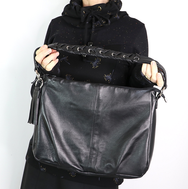 J’ai hésité à ajouter une bandoulière longue amovible car d’un manière générale je préfère porter mes sacs en travers du corps… Mais ma foi, cette anse fait tout de même bien le job !
