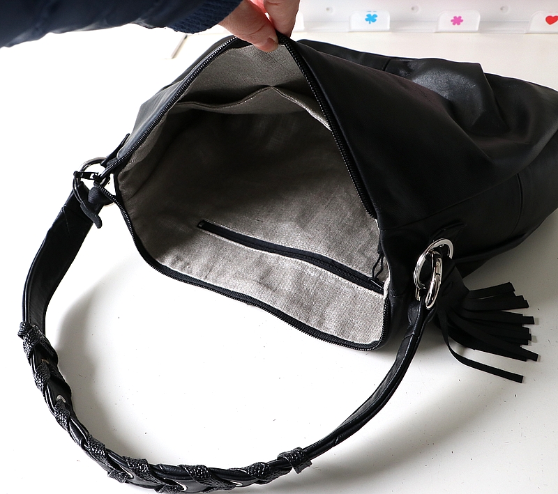 La doublure de teinte claire est un bon choix on trouve plus facilement ses affaires quand on « fourre » dans le sac ! Belle réussite !