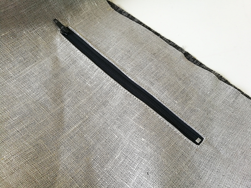 En ce qui concerne le zip, je ne connaissais pas la méthode proposée, j’étais donc contente d’apprendre de nouvelles choses. L’extrémité du zip est positionnée d’une certaine façon : le ruban est plié à angle droit mais les explications ne disent pas vraiment comment faire… Heureusement les photos du livret sont suffisamment explicites.