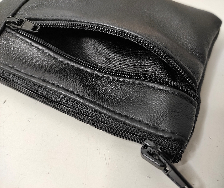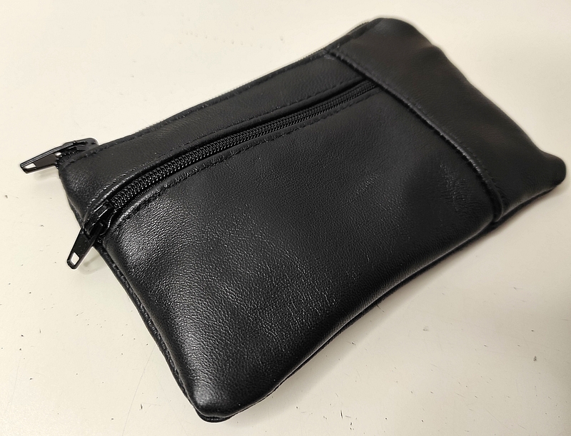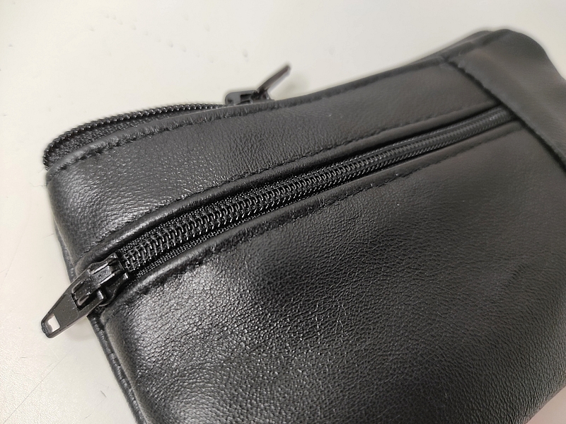 Pour compléter et finir les chutes de ce cuir, je me suis cousu un petit porte-monnaie (patron maison) :