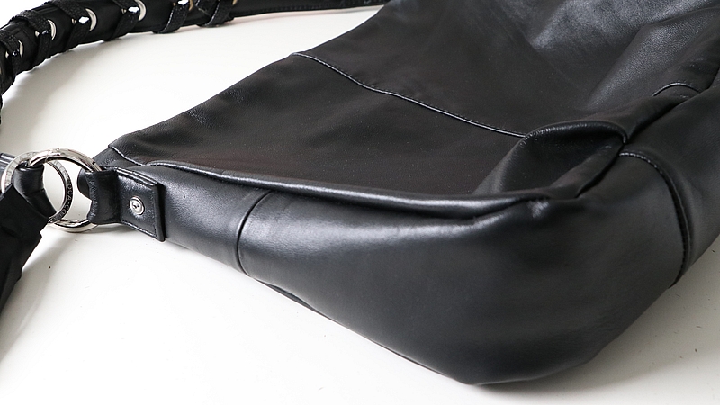 La bandoulière vient se positionner sur les pièces côtés du sac grâce à un anneau mousqueton. Nouveauté pour moi, je ne savais pas que ça existait !