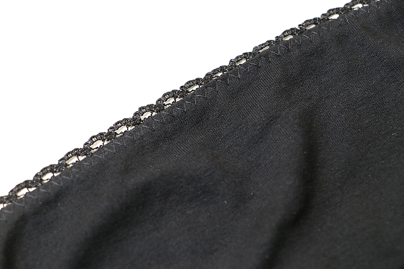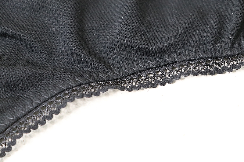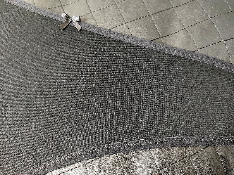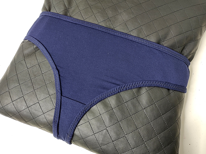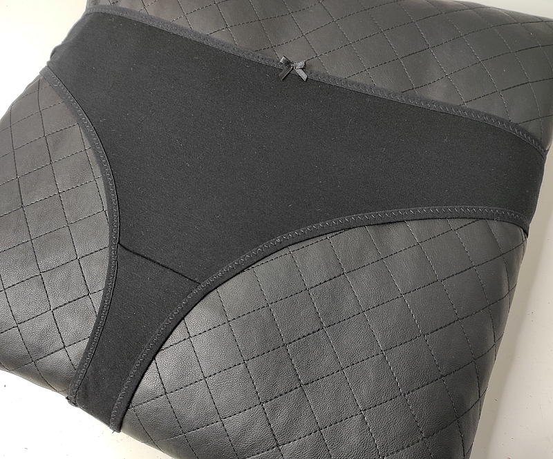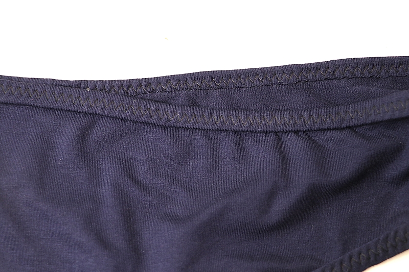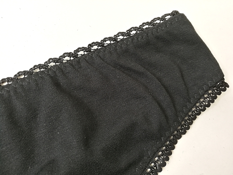 Mon avis : C’est certes plutôt facile à gérer et à coudre mais je trouve le rendu visuel grossier. Ça manque de finesse. Si j’avais utilisé une laminette plus étroite, peut-être que ça aurait arranger quelque chose… Je trouve en tout cas que cette finition crée une surépaisseur : ça se sent au porté et ça se voit. Perso, je préfère quand une culotte est discrète voire invisible, sans aucune démarcation…