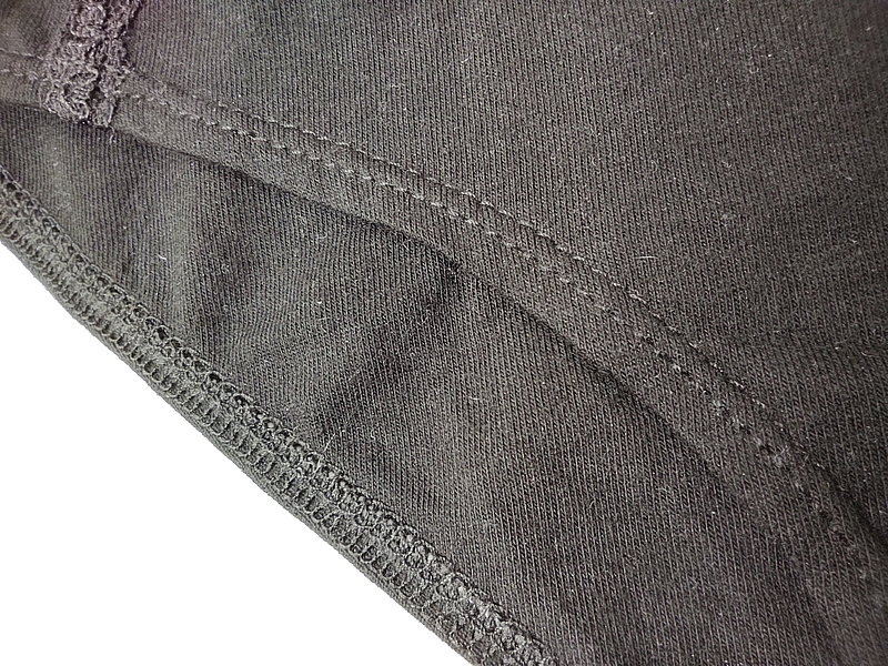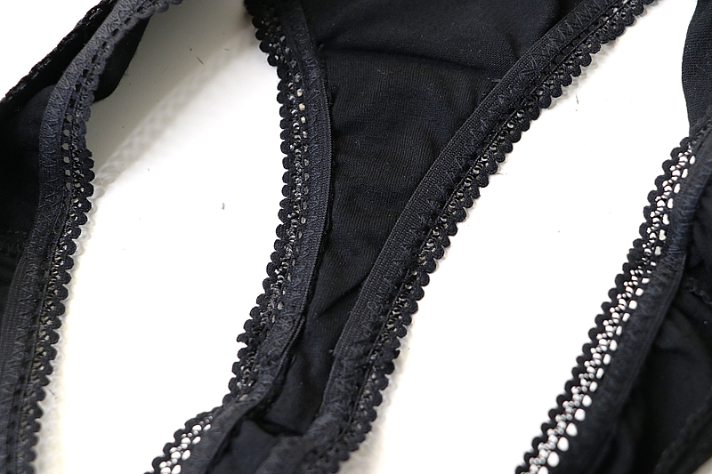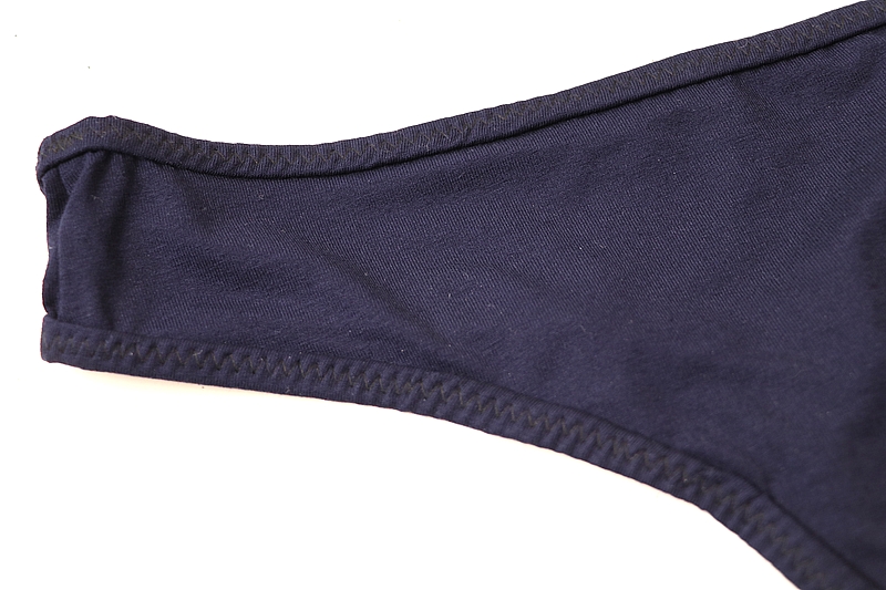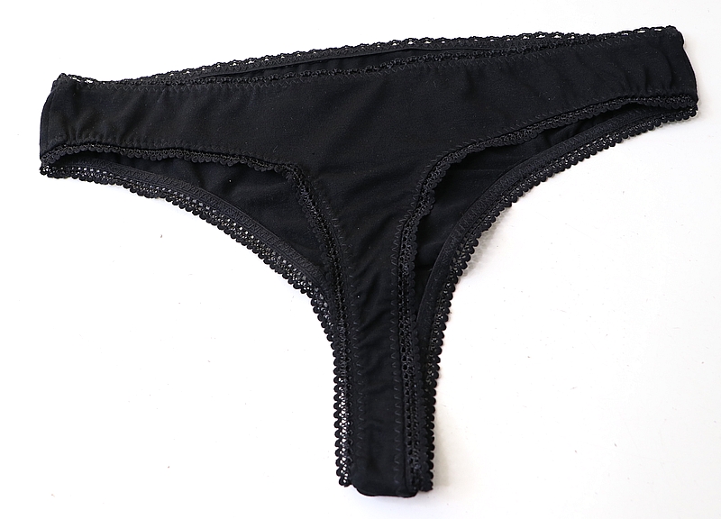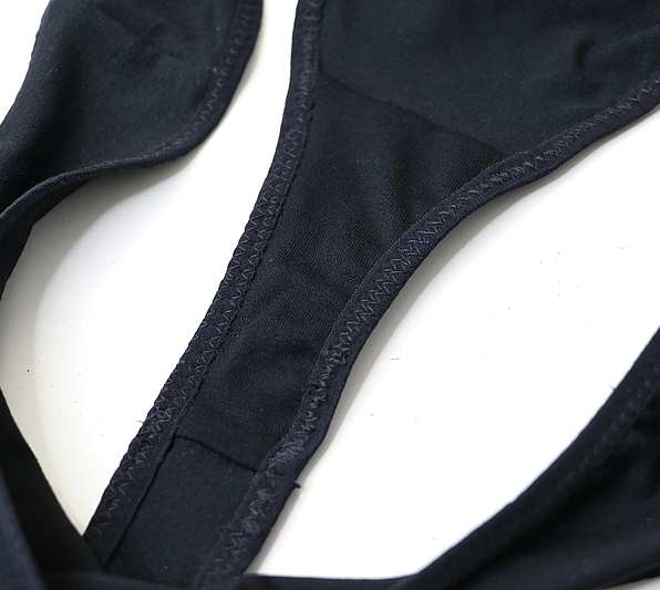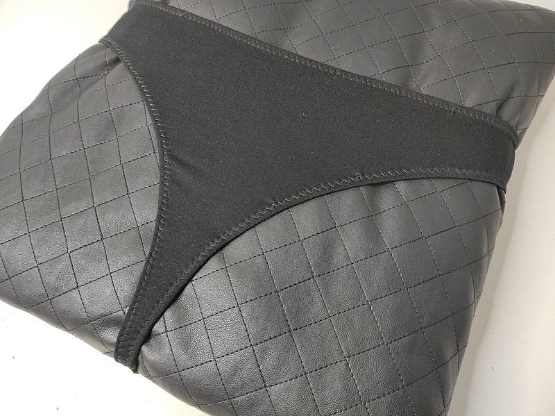 Côté envers / gousset : vu que les bords sont repliés, ça a réduit d’autant l’intégralité du string. Ça se voit nettement au niveau du gousset qui a presque disparu ! J’aurais donc clairement dû ajouter des marges de couture en conséquence… C’est encore une fois en faisant qu’on apprend et comprend !