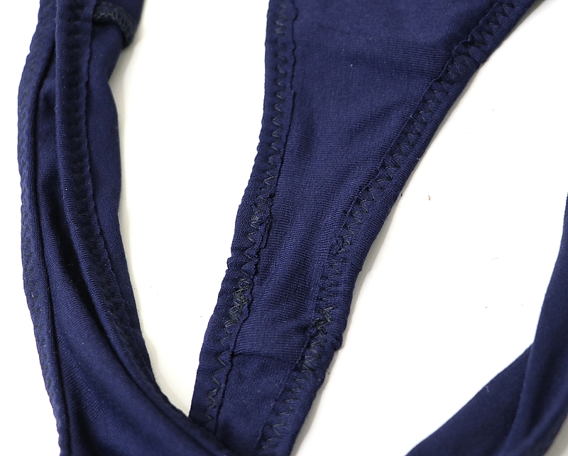 Forte de cette première expérience d’Edmond, je me suis dit que j’allais recoudre ce patron et tenter d’autres finitions, histoire de tester, de découvrir et d’apprendre d’autres techniques… Je précise que j’ai à chaque fois utilisé une aiguille stretch (Schmetz), l’aiguille Jersey étant, me semble-t-il, plutôt réservée aux tissus de type maille tricot. Autre point qui a son importance, je n’ai pas modifié le patronage d’Edmond alors que j’aurais clairement dû tenir compte des finitions que j’ai faites car selon la finition choisie, et bien ça augmente ou ça rétrécit la taille du string….