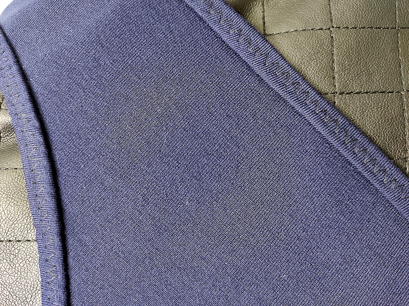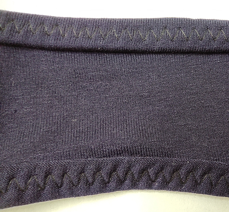 – Pour le premier zig-zag : coudre au plus près du bord extérieur. Si on est trop loin du bord de la laminette, alors ça va créer un petit surplus peu esthétique comme sur ici sur mon projet. Pour le second zig-zag : coudre au centre