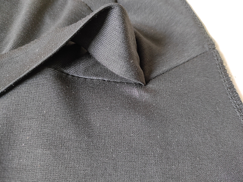 Côté tissus, Burda préconise d’utiliser un jersey stretch assez ferme. Le modèle proposé ici par Burda est un jersey de laine. Quant à moi, j’ai choisi de coudre ma version dans un jersey dont j’ignore la composition mais qui s’apparenterait à un jersey mélangé viscose & polyester d’épaisseur moyenne. Je l’ai acheté dans la boutique Stop Tissus (Paris) à moins de 2€/m, rapport qualité/prix imbattable ! Pour ce projet il faut compter 1m95/2m de tissu (laize 140 cm), ce que je n’ai pas vérifier…