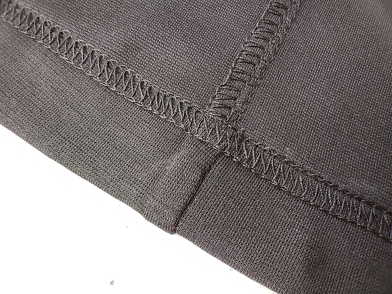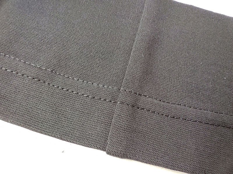 En ce qui concerne la finition des manches et du bas de la blouse, il s’agit ici de larges ourlets de 4 cm. J’ai opté pour un ourlet à la recouvreuse avec deux aiguilles (point de recouvrement large) :
