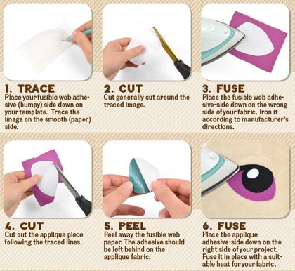 Le principe de base est simple (en tout cas bien plus facile que ce que j’imaginais) : il faut tout d’abord décalquer les motifs sur l’entoilage thermocollant de type Vliesofix (fusible web), couper grossièrement autour, puis placer cette pièce sur notre tissu et presser au fer et seulement après découper avec précision les différentes formes (les narines minuscules, oh my god !!!). Une fois que c’est fait, on vient retirer la pellicule de l’entoilage pour appliquer nos petites pièces sur le visage de la peluche en les pressant à nouveau au fer. Pour comprendre le principe, je vous invite aller voir cette vidéo ou encore celle-ci !