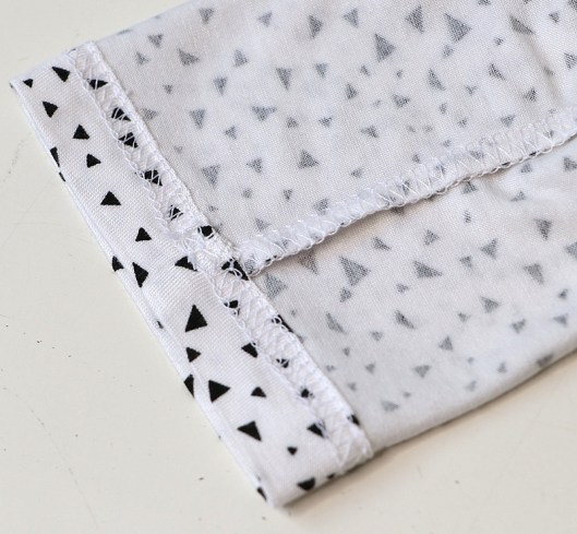 Une fois que c’est fait, on coud les manches, les coutures latérales et on procède aux ourlets (ici à la recouvreuse).