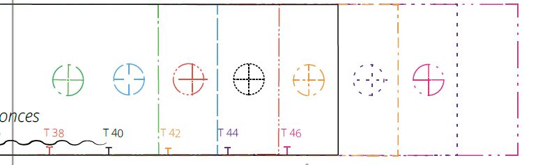 Sur le corsage, il n’y a qu’un seul repère (qui semblerait correspondre à la taille 40 car le code couleur noir correspond à la taille 40) :