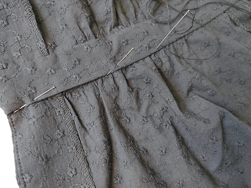 Il est proposé de venir fixer la ceinture à la machine à coudre ou la main. C’est cette seconde option que j’ai choisie :