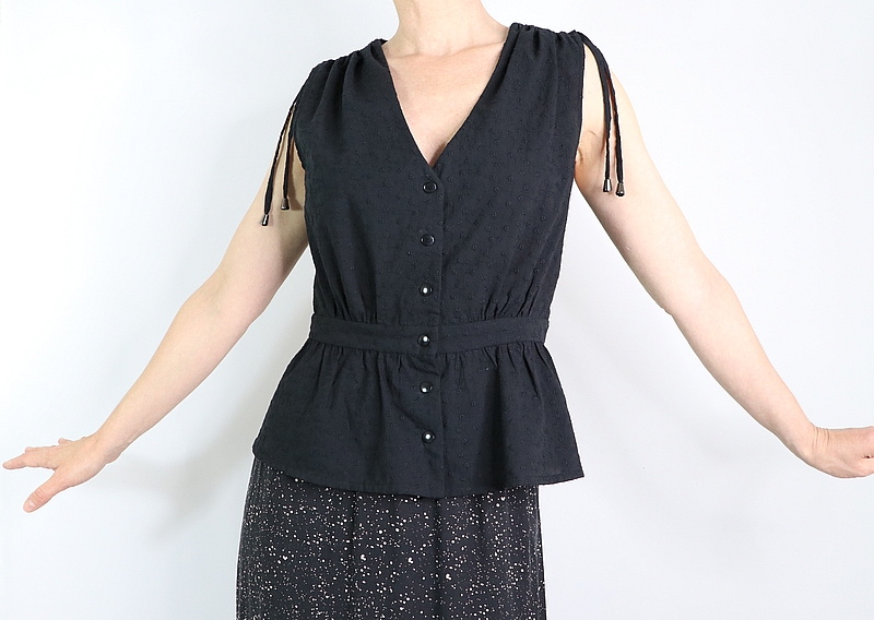 Elle est jolie cette blouse (très 80′ ces épaules à coulisse !) et une broderie anglaise noire c’est original !