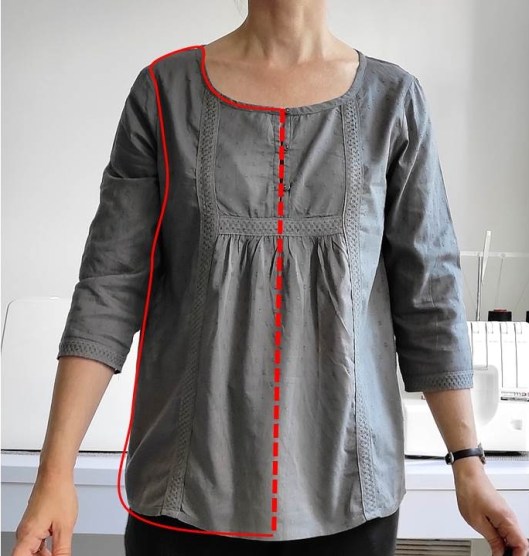Dans mon cas, j’ai choisi une blouse simple car elle était sans pinces, sans poches, et sans autres détails qui auraient pu me compliquer la tâche…