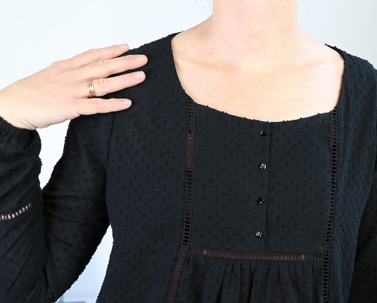 - modifié l’empiècement à brides en faisant une patte de boutonnage avec 4 boutons au lieu de 3