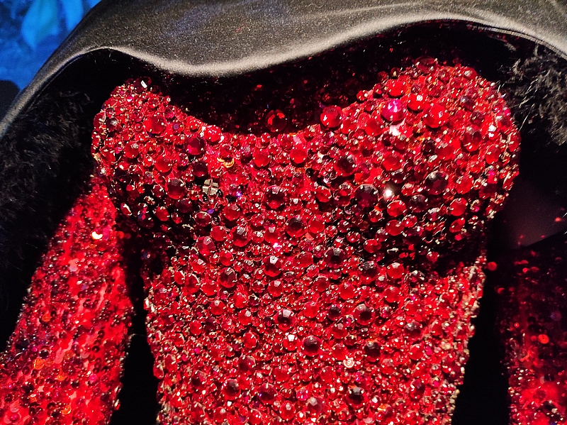 Tenue créée pour la publicité du parfum Angel (2004) : robe bustier en velours, intérieur orné de cristaux :
