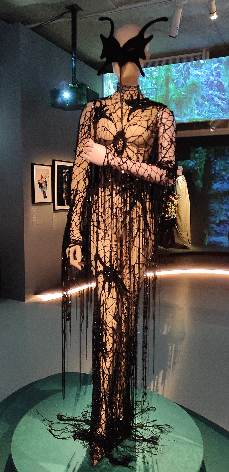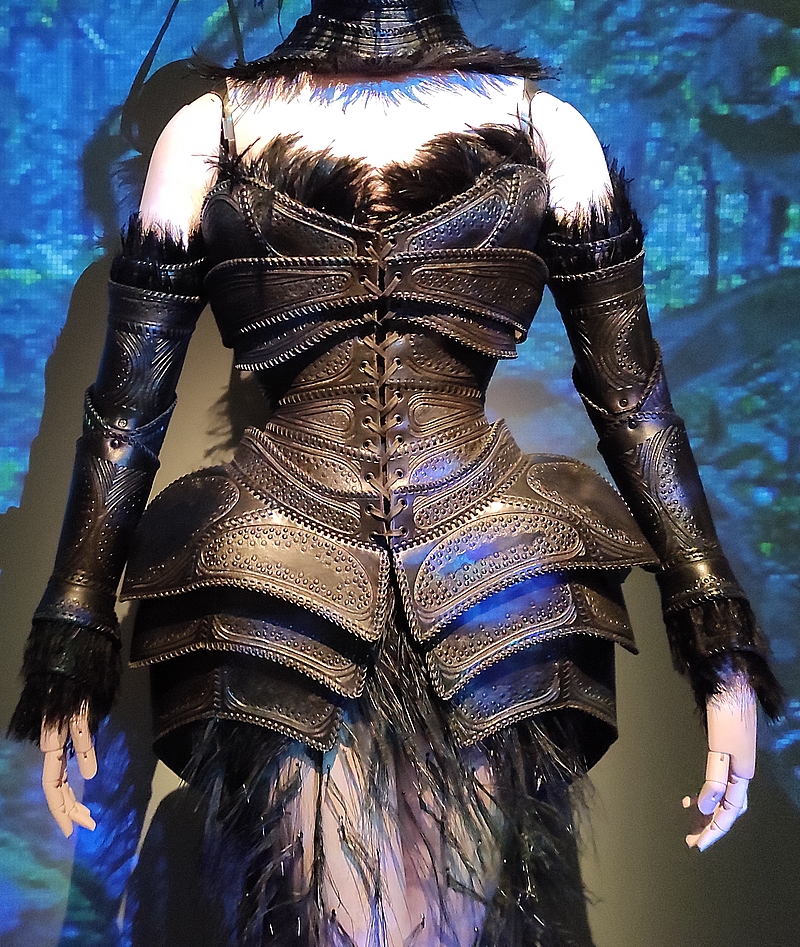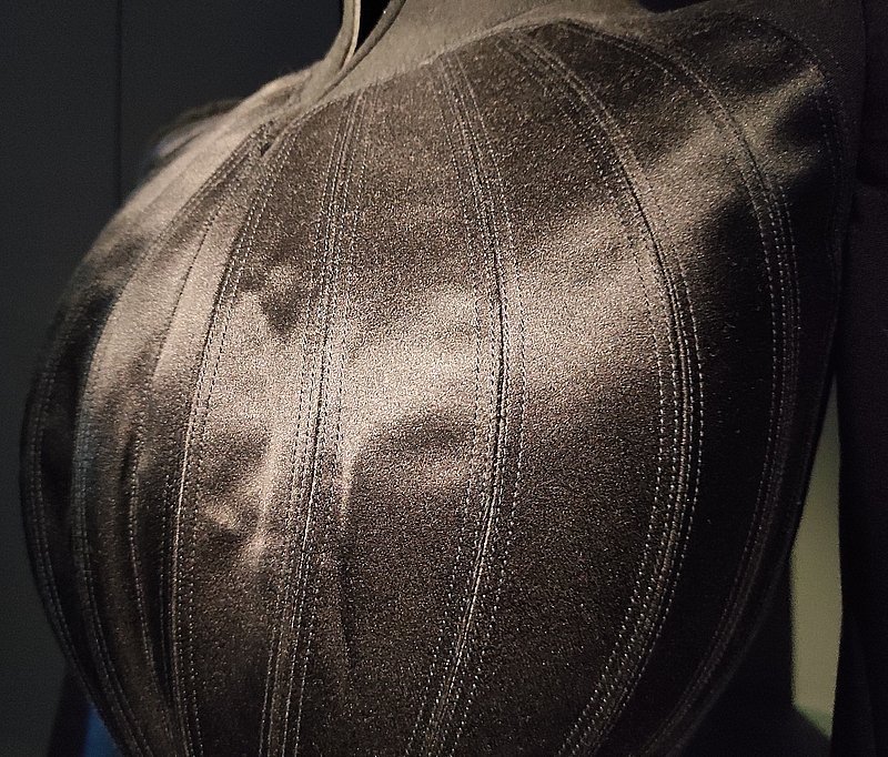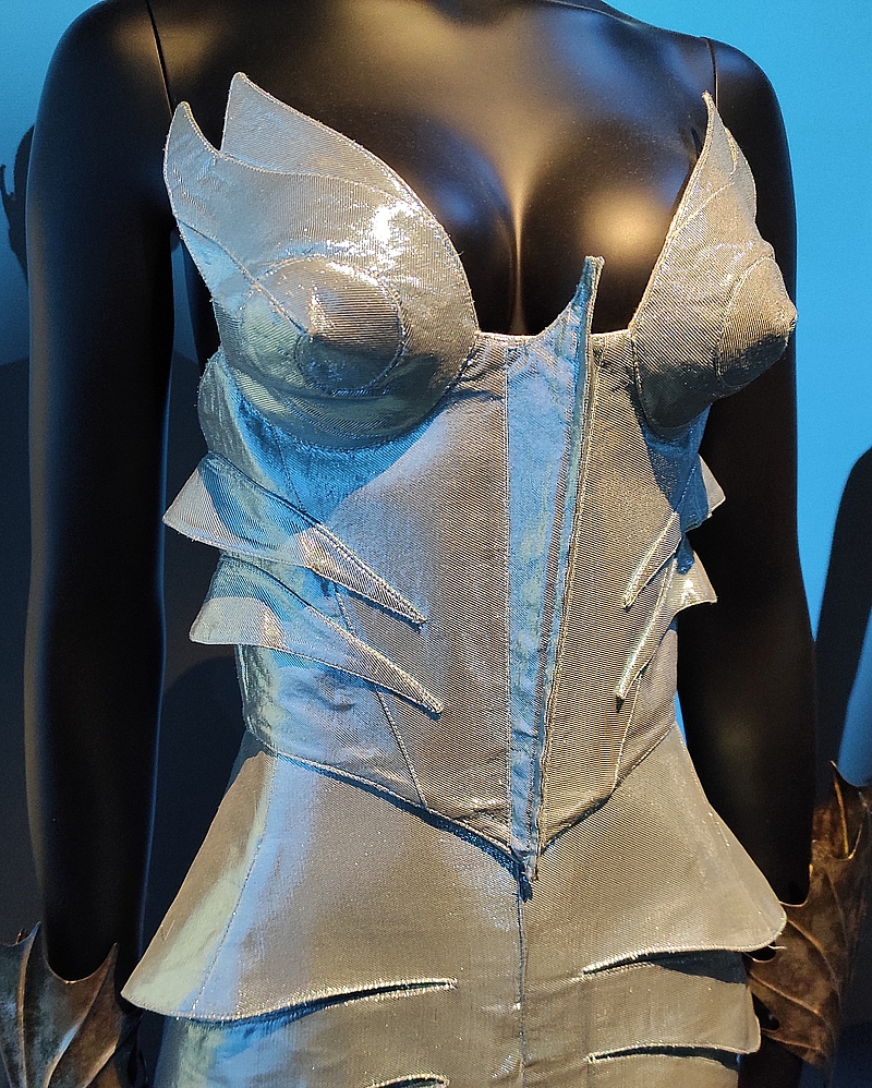 L’exposition se termine sur cette salle dédiée à Macbeth et Lady M où les costumes exposés sont vraiment imposants : « disposant du plus gros budget de la Comédie-Française depuis sa fondation en 1680, Mugler crée plus de 70 costumes et accessoires pour la représentation de La Tragédie de Macbeth donnée par la célèbre troupe. Les acteurs, expliquent le couturier, sont tous dans des armures et des cuirasses magistrales, des musculatures-pourpoints, en cuir et en métal, alors qu’ils sont vulnérables en dessous. »