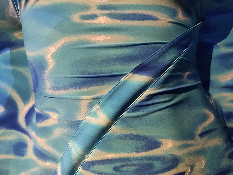 Robe asymétrique « raie manta » en lycra à imprimé « piscine » :